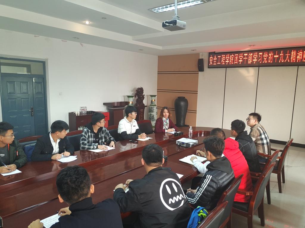 10月20日,安全学院学生干部代表在学院会议室学习十九大精神。