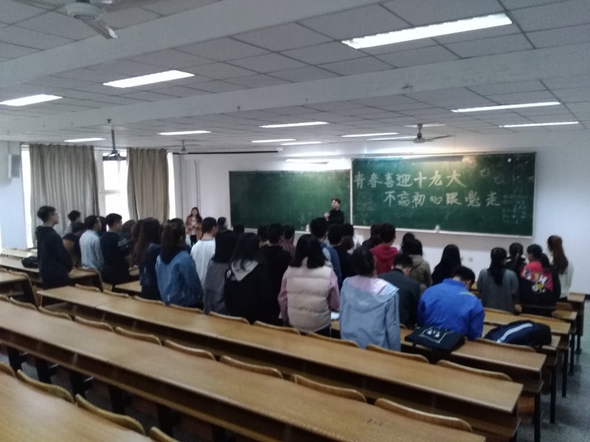 10月19日,理学院统计16级1班在科技大厦N201召开“青春喜迎十九大 不忘初心跟党走”主题班会。