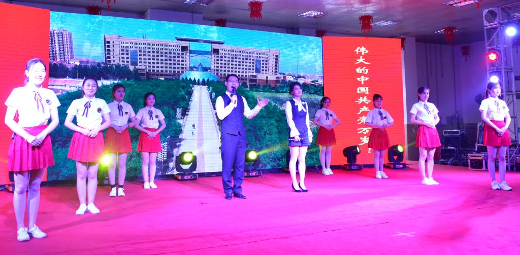 校领导、各基层单位党政领导、工会主席、师生党员代表共同表观看了演出,并在演出结束后与演职人员合影留念。