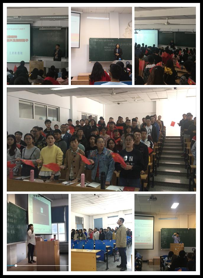 在体验分享中深化爱国主义教育。学院“四进四信”专题课把习近平总书记关于“不忘初心、牢记使命”重要论述融入到习近平新时代中国特色社会主义思想教学内容之中,面向全校学生进行公开讲授。并且以庆祝新中国成立70周年为契机,在学校近5000名学生上课的专题课中,增设了“青春为祖国歌唱”为主题的课堂实践活动环节。所有授课教师抓住育人每一秒,利用课上和课下时间与学习本门课程的研究生、本科生一起高唱红色歌曲《我和我的祖国》,并剪辑制作了专题视频,利用移动数据端进行推送。通过这种体验式的教育形式,增强了广大学生的爱国主义情感,进一步坚定了“四个自信”。