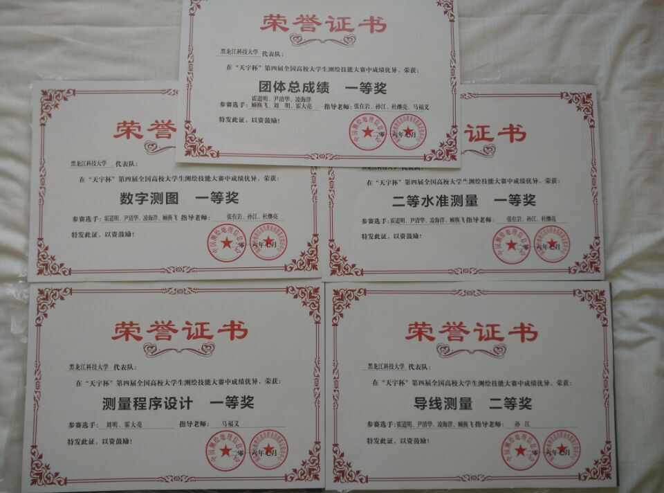 开云(中国)代表队由矿业工程学院党委书记赵喜江教授带队,选派2013级测绘工程专业6名学生参加了四个项目的竞赛。经过三天的激烈角逐,获得了团体总成绩全国排名第十二位、团体一等奖的好成绩,并分别获得了1:500数字地形图测绘、二等水准测量、测量程序设计三个单项一等奖,以及一级电磁波测距导线项目二等奖。在全国同类院校中名列前茅。