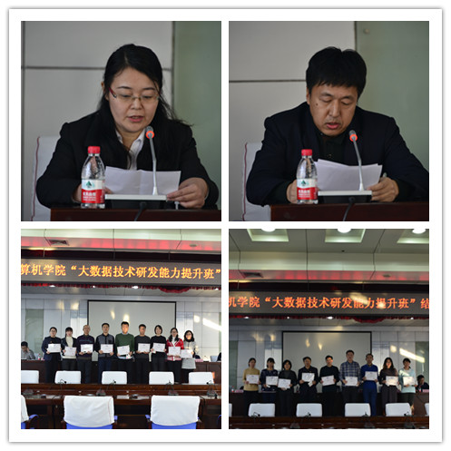 学院党委副书记张丽媛宣读了表彰决定,授予李明学等56名教师“优秀学员”荣誉称号,授予张兴华“学习标兵先进个人”荣誉称号,授予物联网工程教研室“先进集体”荣誉称号。与此同时,56名优秀学员还获得由中软国际颁发的大数据开发工程师证书。