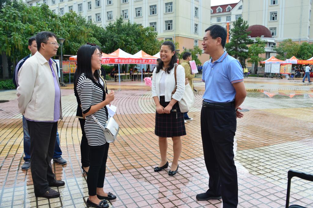 在新生家长休息区,校领导与新生及家长亲切交谈,了解学生和家长对学校的印象,询问他们对于学校各项服务工作的意见和建议。并勉励新同学尽快熟悉学校环境,适应大学生活和学习节奏,充分利用学校良好的学习、生活条件,发挥潜能,追逐梦想,度过精彩的大学时光。