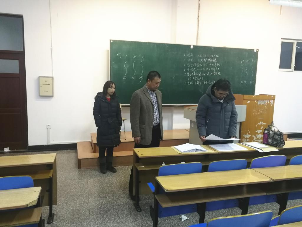 1月8日上午,校长郝传波在教务处副处长邢世海等人陪同下,深入教学主楼考场检查指导期末考试工作。
