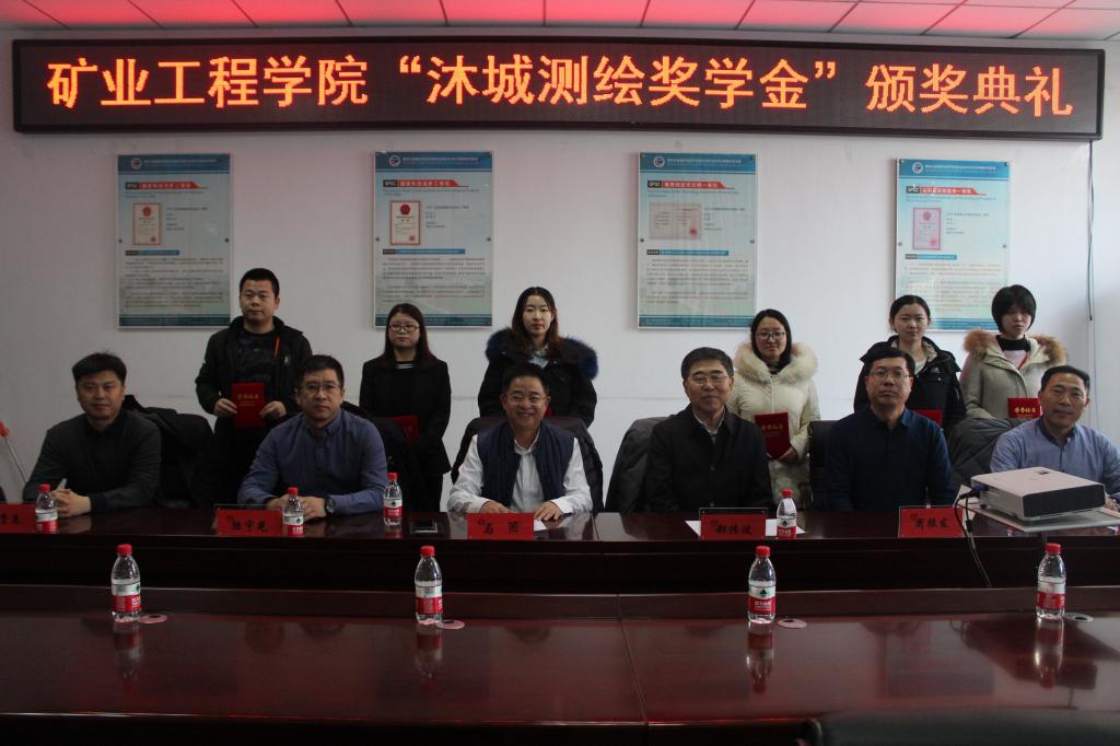 典礼由矿业工程学院党委书记赵喜江主持。矿业工程学院院长肖福坤宣读了《关于表彰2018年度“沐城测绘奖学金”的表彰决定》,与会领导和嘉宾为受表彰的学生进行颁奖;获奖学生代表测绘16-1班于芝琳同学做了表态发言;沐城测绘(北京)有限公司总经理张贵春在讲话中,以《感恩母校·合作共赢》为题,简要介绍了在校学习经历和公司发展历程、行业发展现状。他表示,感谢母校的培养,感恩老师的教诲,今后将继续与母校加强交流合作,助力母校的建设与发展。