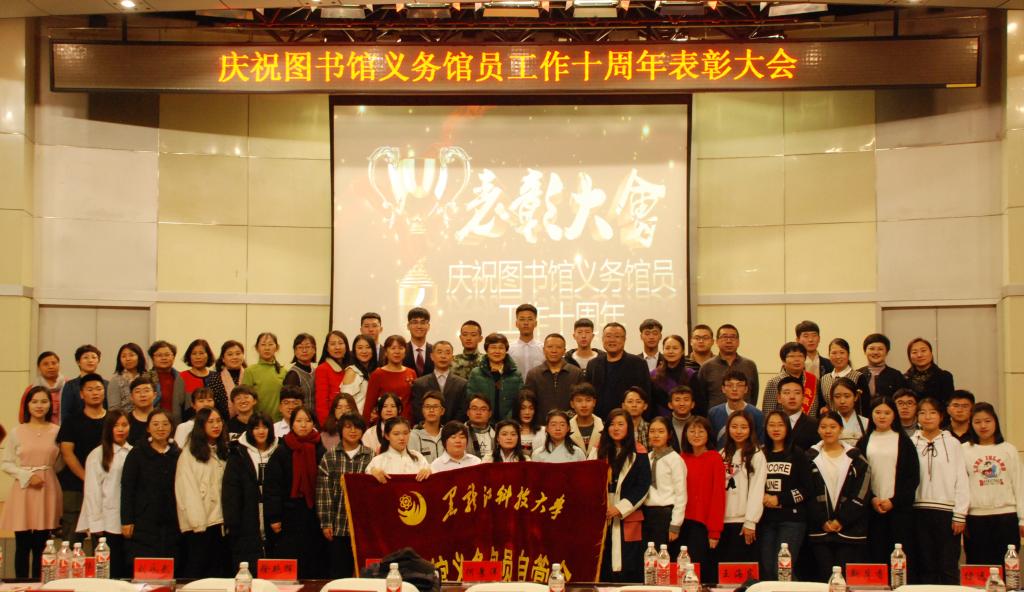 为庆祝义务馆员工作十周年,推进义务馆员工作持续深入,图书馆以“不忘初心方得始终,十年路程携手同行”为主题,在历时两个月的时间里,先后召开义务馆员座谈会、指导教师座谈会、义务馆员十周年征文、宣传视频展示、图片展、优秀义务馆员和指导教师评选等系列活动。12月9日晚,图书馆在信息楼报告厅,组织召开了义务馆员工作十周年表彰大会。
