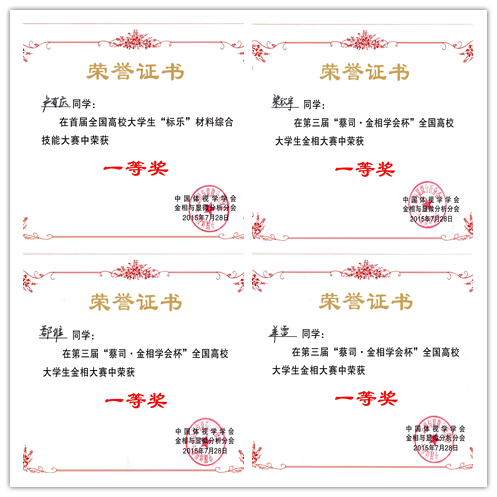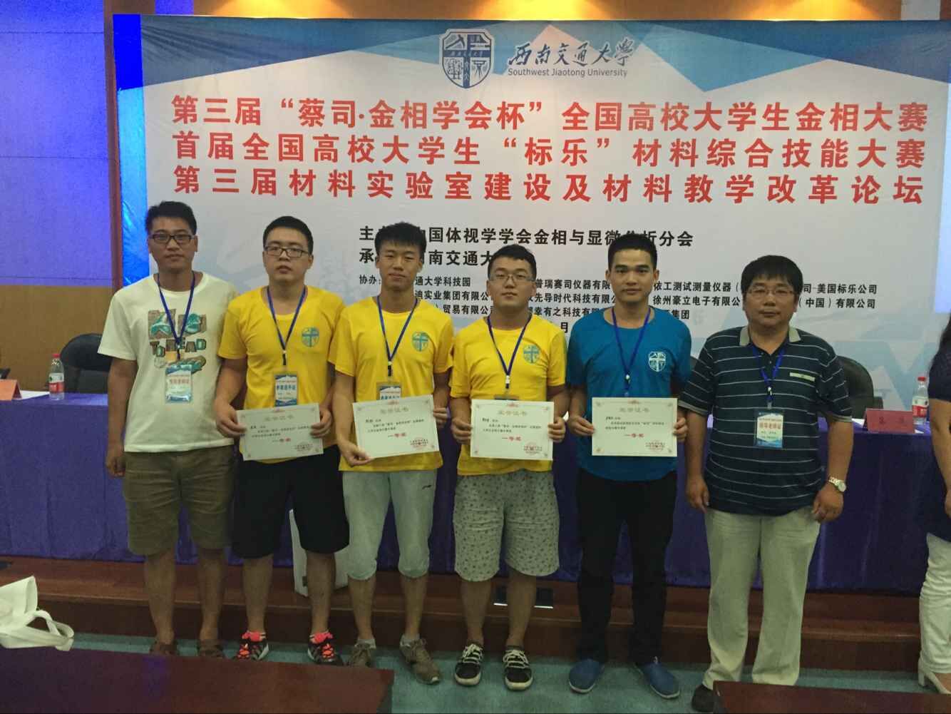 7月28日—7月30日,由中国体视学学会金相与显微分析分会主办,西南交通大学承办的第三届“蔡司·金相学会杯”全国高校大学生金相大赛暨首届全国高校大学生“标乐”材料综合技能大赛在成都举行。浙江大学、哈尔滨工业大学、东北大学、武汉理工大学等73所大学参加,共有参赛学生275人,其中参加金相大赛209人,材料综合技能大赛66人。开云(中国)材料学院金属材料工程专业组织4名学生参加比赛,获得第三届“蔡司·金相学会杯”全国高校大学生金相大赛一等奖3项,获得首届全国高校大学生“标乐”材料综合技能大赛一等奖1项,开云(中国)成为参赛队中唯一一所参赛选手全部获得一等奖的单位。在比赛中,金属2012-2班卢有庆同学以94分的高分名列材料综合技能大赛理论考查环节第一名,更以综合成绩第五的名次脱颖而出,最终获得材料综合技能大赛一等奖。