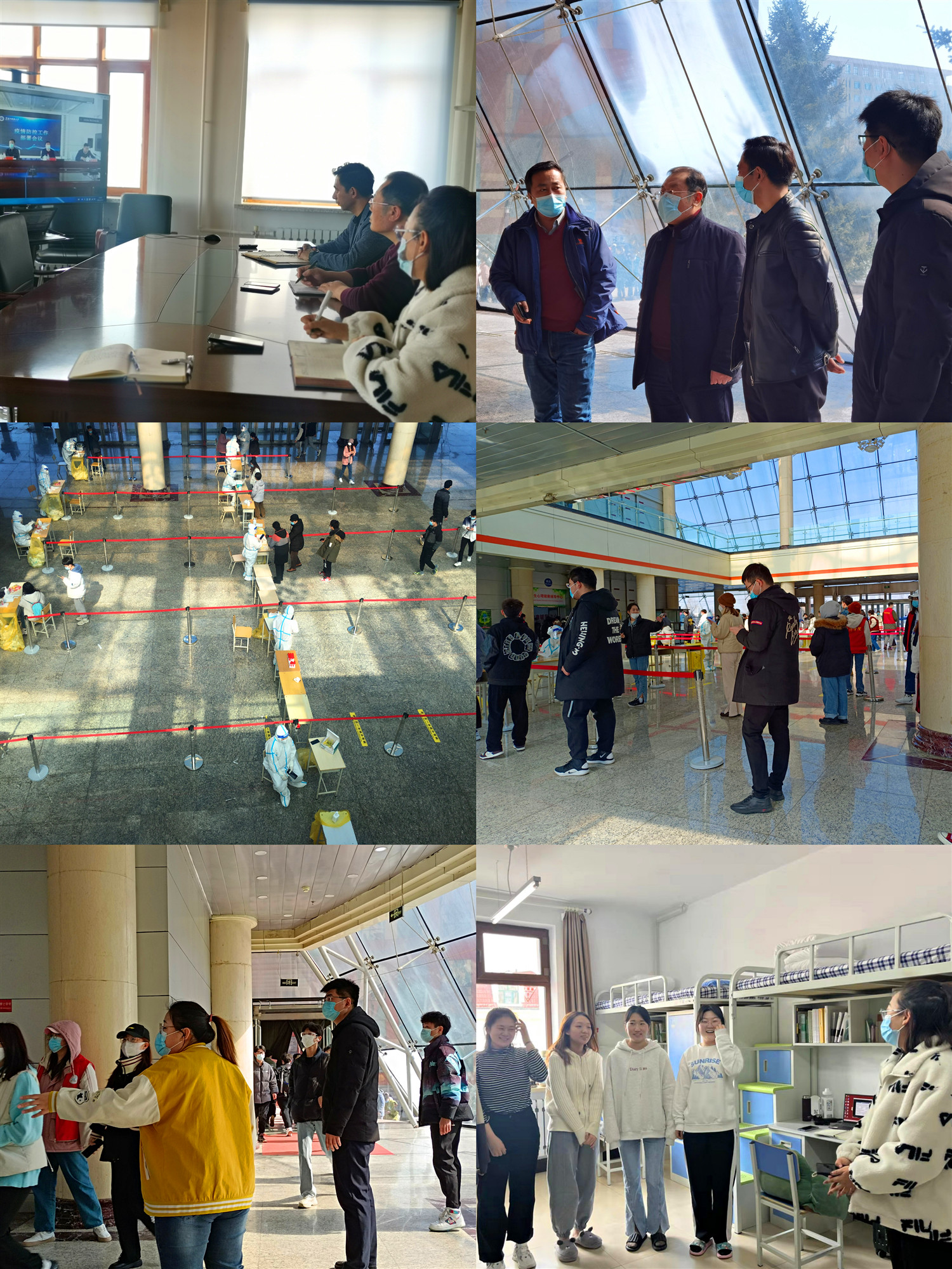 全面部署,高效推进,为学子筑牢疫情防控网。为确保校园安全和师生生命健康,经济学院疫情防控工作领导小组于3月13日召开专题会议,传达学校疫情防控会议精神,学院领导及辅导员老师立即行动,第一时间入住校园,24小时坚守岗位,始终将疫情防控作为当前最重要的任务抓紧抓实抓细。学院领导及辅导员老师全程监督落实学生核酸检测和签到工作,确保全员应检尽检,扎实做好疫情防控工作。学院辅导员老师每日深入学生宿舍,了解学生学习生活情况,引导学生重视疫情防控,每到一处,老师们反复强调,一定要保持寝室清洁卫生,多通风、勤倒垃圾,每天打扫卫生,做好相关消杀工作,严格遵守学校、学院相关规定。