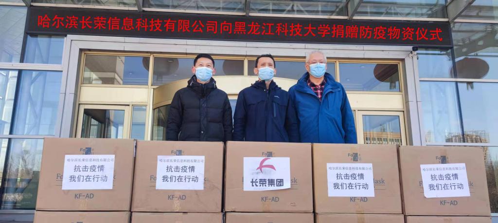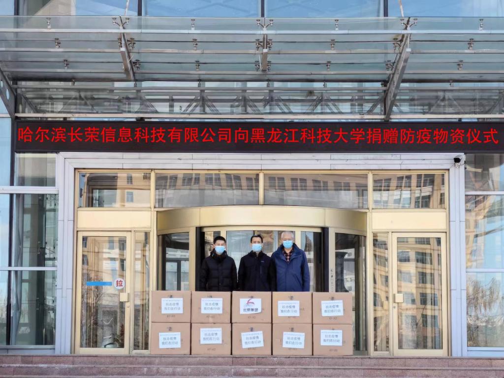 3月19日,在学校疫情防控的攻坚阶段,哈尔滨长荣信息科技有限公司,积极筹措防疫物资,向开云app登录入口计算机与信息工程学院师生捐赠20000只口罩。学校资产处处长刘浩川、计算机学院党委书记吴新文,辅导员赵岩参加捐赠仪式。