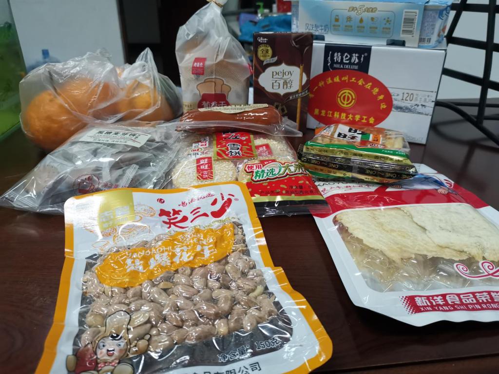 10:30,核酸抽检如期完成,回到办公室第一件事就是一一联系未就业的同学,了解他们困难,对接用人单位,推荐合适岗位。一转眼就到了中午,抬头看见桌子上学校工会送来的牛奶,院长今天早上刚刚放到我桌面上的水果以及海英书记和宋烨、伟骅送来的枣糕、面包等慰问品,我便打消了去食堂的想法,在办公室“随便”吃了一口。