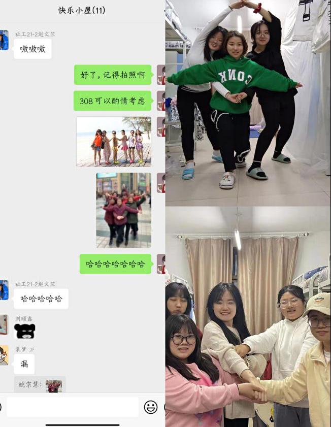 午饭后,给我所负责党员责任区的学妹们发消息:今天天气真好!我们下午出去玩吧~她们也都非常开心,在群里积极应答。