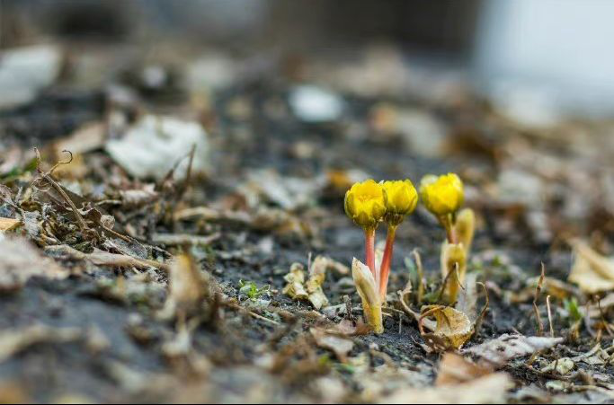 四月的哈尔滨,空气夹杂着春意的湿味,校园丛树一隅,冰凌花绽放着嫩黄色的花蕾,透过云朵儿倾洒的缕缕暖阳,使校园多了份春色。
