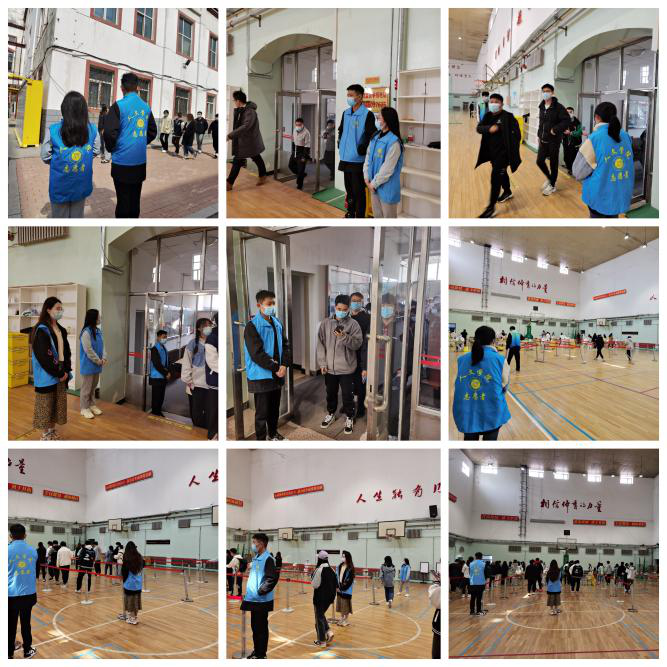早上8:00,人文学院核酸检测志愿服务队在体育馆门口集合,准备开始今天的核酸抽检工作。在核酸抽检过程中,学院核酸检测志愿服务队安排专人负责核酸登记,严控排队检测人数,将待检测人员及时分流,维持人员的单向流动,保持一米安全距离等,协助维护现场秩序。人文学院核酸检测志愿服务队、核酸检测工作人员与参与检测的同学共同努力,有效提高核酸检测效率,用行动助力打赢疫情防控阻击战。