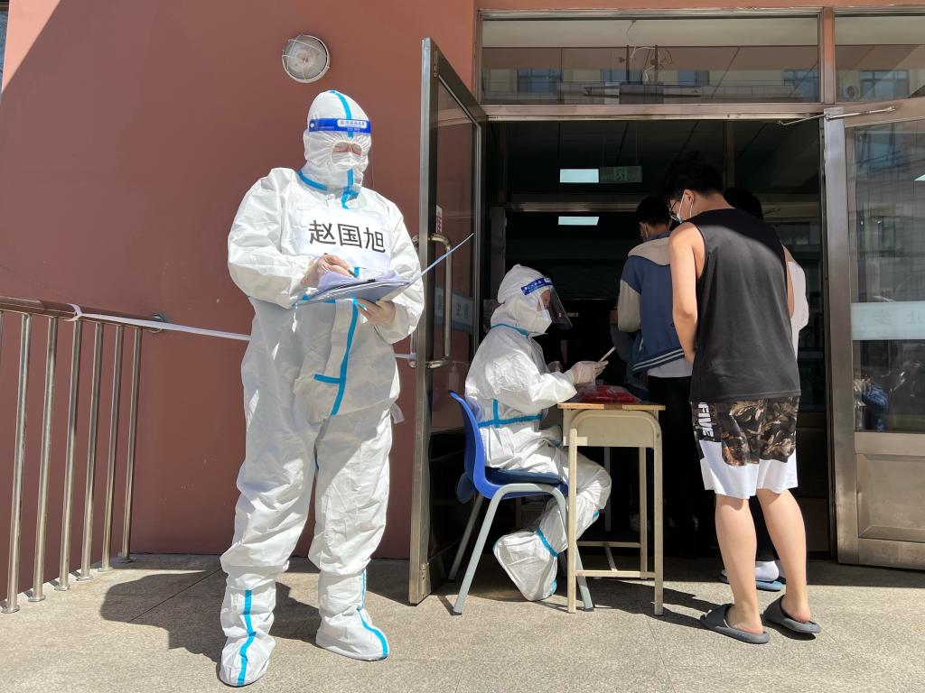 11:19医护人员到达公寓楼下,核酸检测陆续开始,我按照要求指挥着志愿者监督检测学生戴口罩、排队间隔、扫码等情况。排队是枯燥的,学生们总喜欢贴在一起聊天,稍不注意就距离过近,需要辅导员在场不停劝导才能有效解决,虽然方法笨,但总算能达到要求。