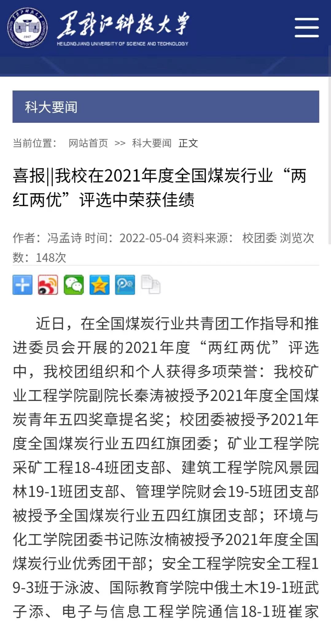 5月4日,学校召开了纪念五四运动103周年青年座谈会,党委书记周宏力出席座谈会,向全校广大青年师生致以节日祝贺和诚挚问候,并作了语重心长、情真意切的讲话,18名师生代表围绕学习习近平总书记在中国人民大学调研时的讲话精神、习近平总书记回信精神、喜迎二十大、庆祝建团100周年、继承和发扬五四精神等方面,畅谈青春理想,共话青春使命;校团委坚持发挥典型示范作用,在五四前夕,评选管理学院团委等5个团委为“五四红旗团委”、风景园林19-1班团支部等39个团支部为“五四红旗团支部”、统计18-1班唐庚辰等25名同学为“开云app登录入口之星”、龙机电19-1班陆靖等119名同学为“优秀团干部”、矿加19-1班赵玉洁等228名同学为“优秀团员”,共同激励广大团组织和团员、团干部再接再厉,再创佳绩;在今年的全省、全国煤行业“两红两优”评选工作中,开云(中国)多个先进集体和先进个人获奖,数量创历史新高。