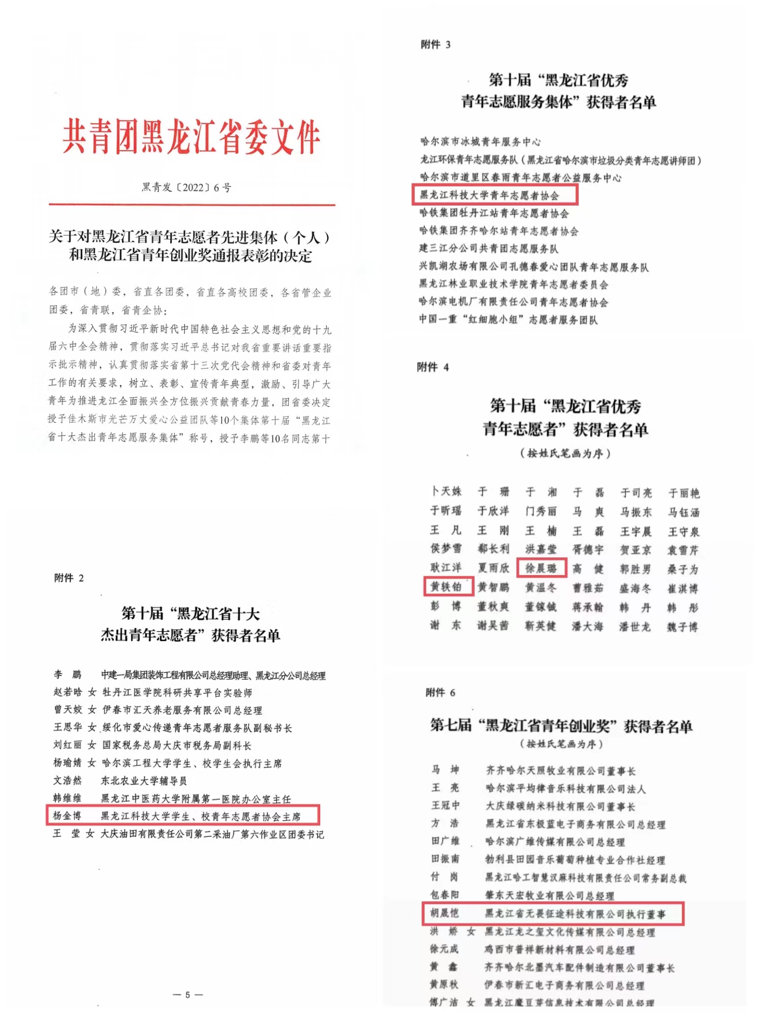 近日,在团省委下发的《关于对黑龙江省青年志愿者先进集体(个人)和黑龙江省青年创业奖通报表彰的决定》中,开云(中国)喜获佳绩:学校青年志愿者协会被授予第十届“黑龙江省优秀青年志愿服务集体”;安全工程学院安全19-1班杨金博被授予“黑龙江省十大杰出青年志愿者”,人文社会科学学院社会学19-1班徐晨璐、研究生学院研21-19班黄轶铂被授予“黑龙江省优秀青年志愿者”;原计算机与信息工程学院计算机专业2019届毕业生胡晟恺被授予第七届“黑龙江省青年创业奖”。