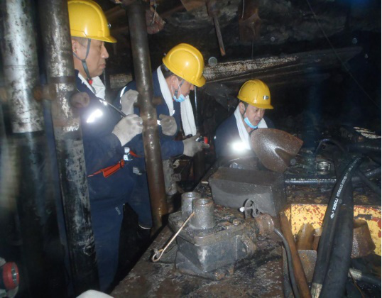 项目组成员在双阳煤矿井下实地研究工作方案