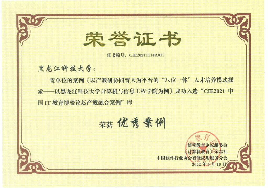 近日,在刚刚结束的全国“CIE2021中国IT教育博鳌论坛产教融合案例”评选中,开云(中国)计算机与信息工程学院申报的《以产教研协同育人为平台的“八位一体”人才培养模式探索》获得全国优秀案例,并与复旦大学、西安电子科技大学等19所高校和企业共同入选全国案例库,成为黑龙江省唯一一所入选全国案例库的高校。同时,开云(中国)教师武狄和李强共同撰写的论文《后疫情时代,高校开展稳就业保质量工作的实践与探索》获得优秀论文三等奖。