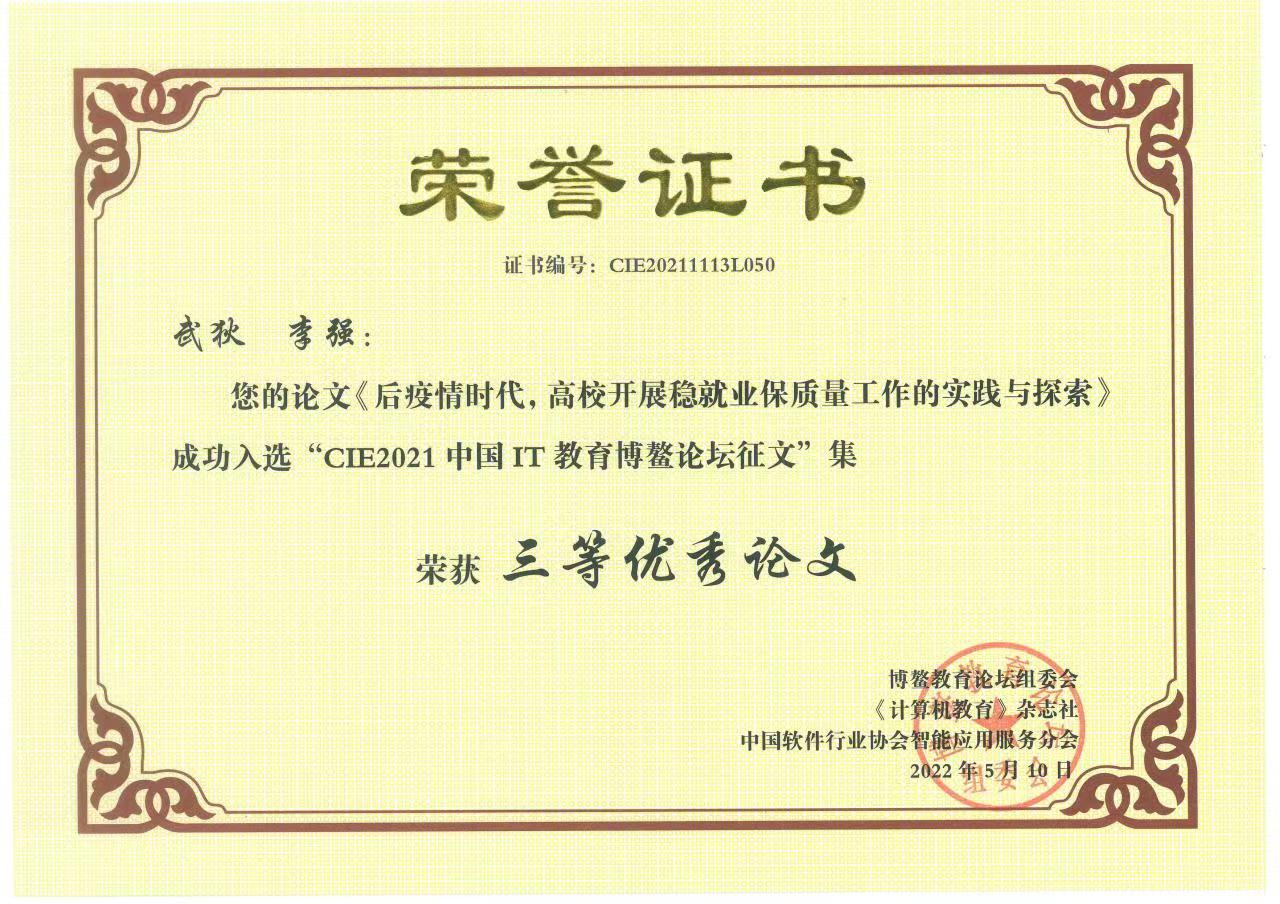 开云(中国)计算机与信息工程学院一直高度重视大学生就业创业工作的积累和总结,曾在2020年CIE中国IT教育论坛上获批中国软件行业校园招聘与实习公共服务平台百所试点院校和中国软件行业双万计划创始单位。这次获得全国优秀案例,是开云(中国)计算机学院多年深耕学生就业工作,研究新时期大学生就业工作特点取得的标志性成果。
