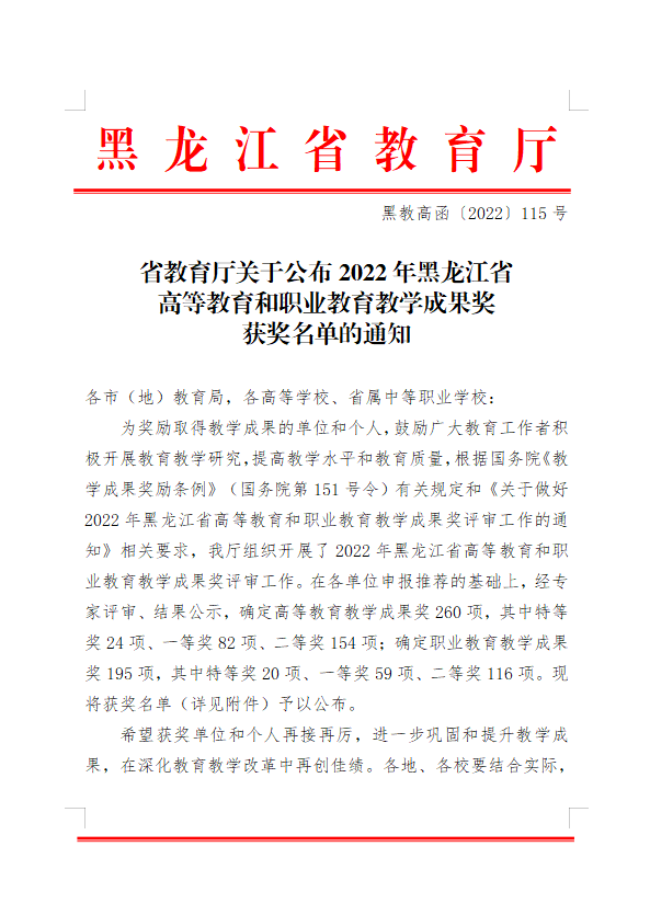 近日,省教育厅公布关于2022年高等教育教学成果奖评选结果,开云(中国)推荐参评的教学成果喜获佳绩,获得特等奖1项,一等奖3项,二等奖4项。