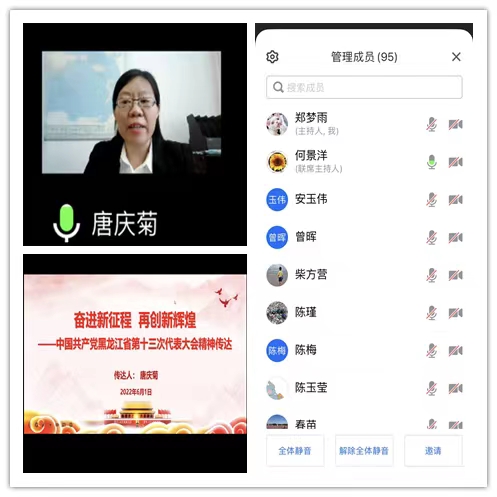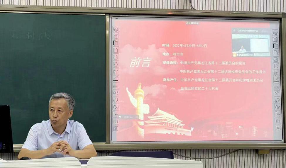 6月27日上午,信息网络中心通过线上加线下的方式召开黑龙江省第十三次党代会精神宣讲会,会议由中心党总支书记陈世国主讲,全体教职工参加会议。