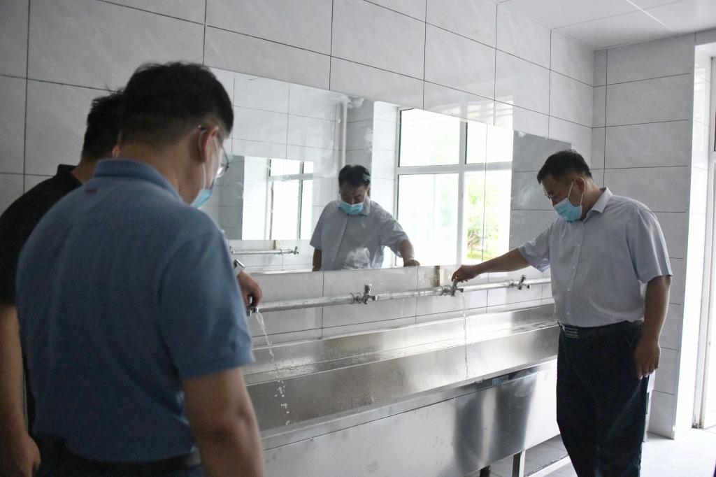 张宝成一行现场查看了学生公寓洗漱间、给水外网改造及室内粉刷等收尾工作,他强调,要逐项对各节点的使用功能进行检查、调试,对宿舍环境卫生要进行彻底清理、消杀,对校内未完工的改造项目要进行全封闭管理,实现施工人员与师生隔离,营造安全、干净、舒心的学习生活环境。