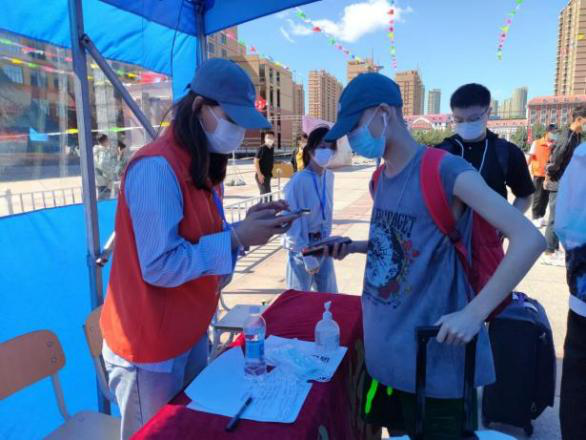高质高效、化解风险,全线出击应急疫情风险。返校期间,疫情突然袭来,黑河、齐齐哈尔甘南、大庆等城市出现本土病例,面对突发疫情的“加试题”,学工部指导各学院沉着应对,第一时间与相关风险地区学生786人建立“一对一”联系,教育未离家学生暂不返校,遵守属地防控要求居家抗疫;全程关注已离家的417名学生,开辟专用通道进校,有序完成核酸检测、宾馆隔离居住、抗原检测、健康监测、心理疏导、免费就餐等各项工作,确保学生疫情防控“加固”、教育管理“加强”,服务保障“加码”,全力以赴把好“入校关”。