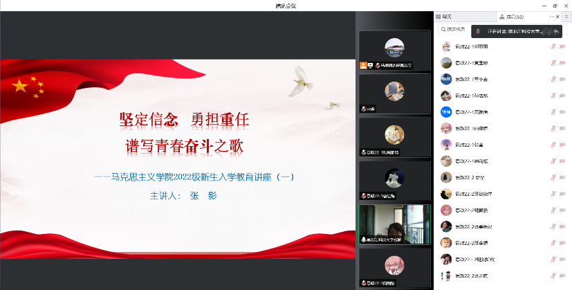 全校合力联动,营造良好育人氛围。各学院党政领导、任课教师走进线上课堂,强化思想政治引领,加强常态化疫情防控背景下的大学生思想政治教育,引导学生树立与时代主题同心同向的理想信念,激发学生的责任感和使命感,以实际行动迎接党的二十大胜利召开。各学院以就业目标为导向,通过专业认知教育会、学业规划指导会、典型经验交流、校友讲座的形式加强专业教育和优良学风培育,培养新生学业志趣,增加新生专业认同,制定学习生涯规划,明确学习成长目标。全体辅导员、班主任立足“云班会”,开展人身安全、防火防汛、防电信诈骗、规范网络使用等多项安全教育,提高新生安全防范意识,保障身心健康和生命安全。面向新生开展了适应性心理健康教育讲座,启发新生悦纳自我,尊重生命,提升新生环境适应能力,树立健康生命观。