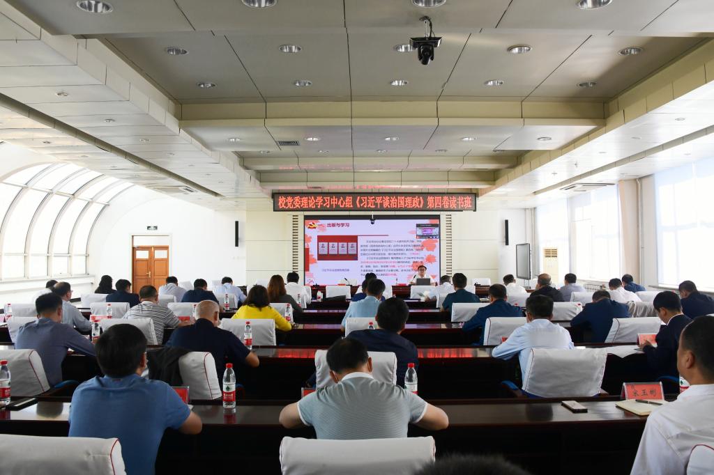 9月14日上午,学校党委理论学习中心组《习近平谈治国理政》第四卷读书班开班暨专题辅导报告会在办公楼6004会议室以线上线下相结合方式举行。报告会上,省委宣讲团成员、马克思主义学院院长冯德军教授作专题辅导。报告会由校党委书记周宏力主持。校党委理论学习中心组成员,各院(处)级单位党组织书记,机关部门负责人及评估中心、学术理论研究部负责人线下参会。学校其他副处级以上干部,党支部书记线上参加了会议。