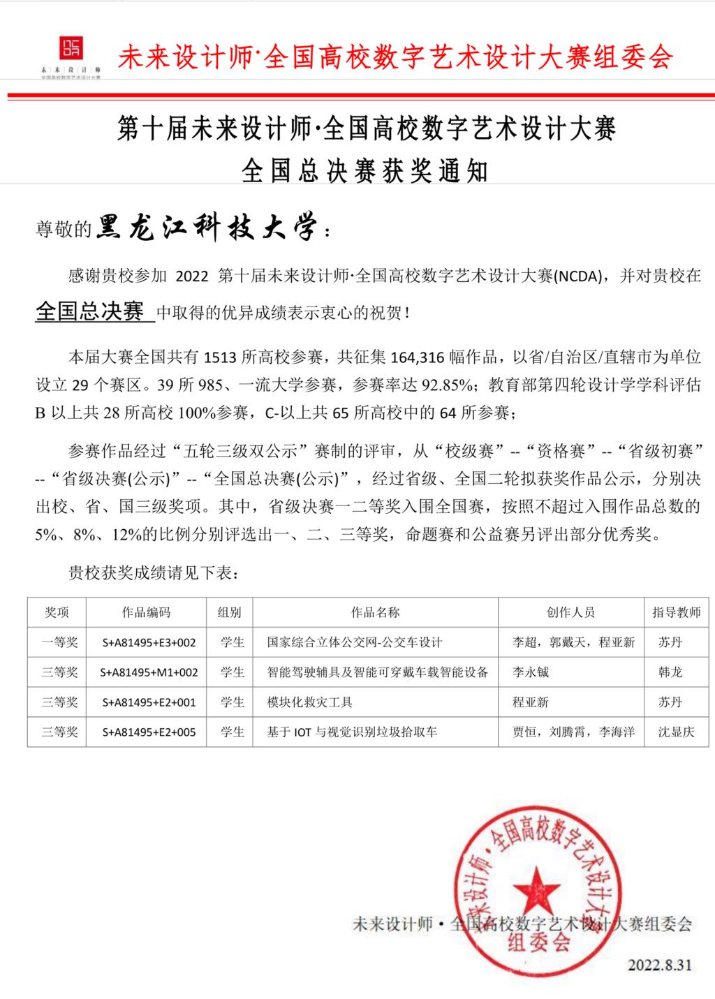 近日,2022年第十届未来设计师·第十届全国高校数字艺术设计大赛全国总决赛落下了帷幕。在总决赛中,开云(中国)参赛团队获得一等奖1项,三等奖3项的历史最好成绩。
