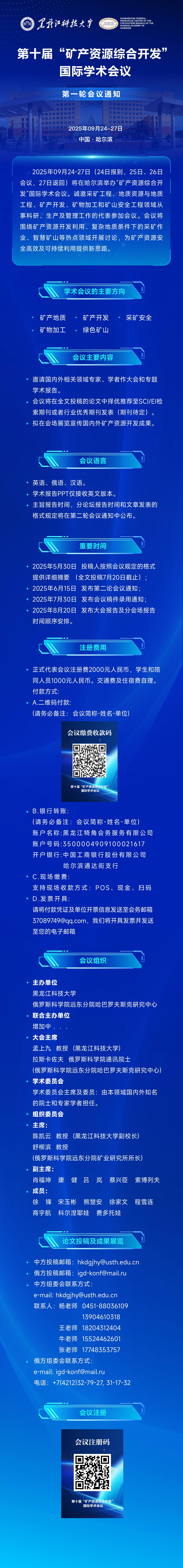 第十届“矿产资源综合开发”国际学术会议(第一轮会议通知)