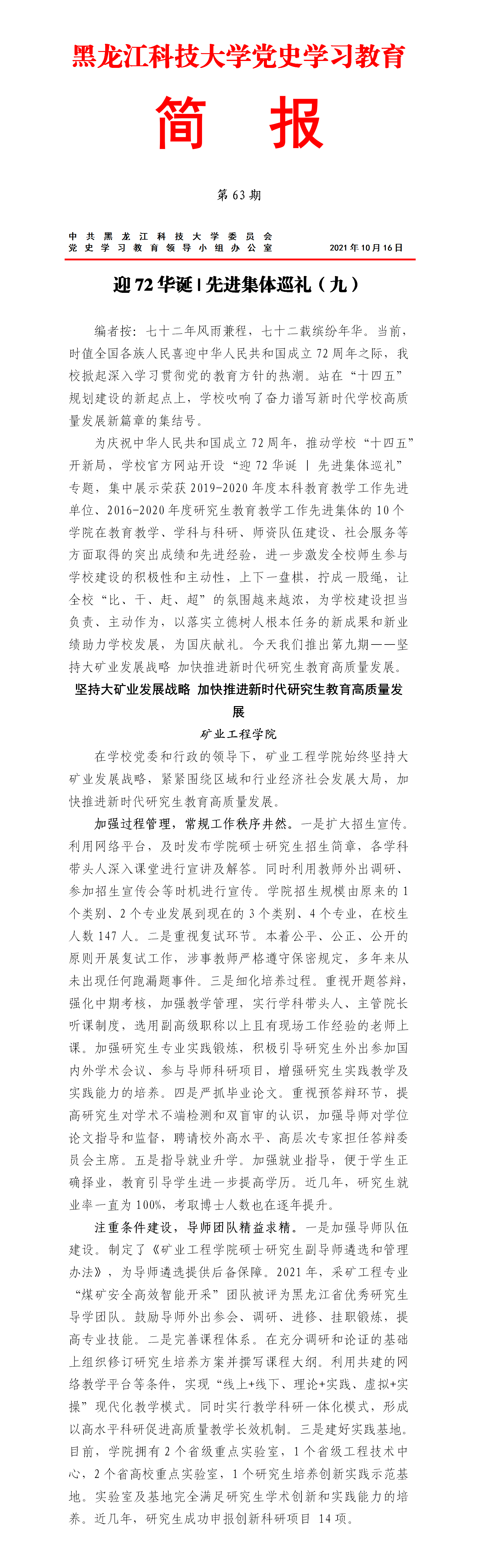 党史学习教育工作简报(第63期)
