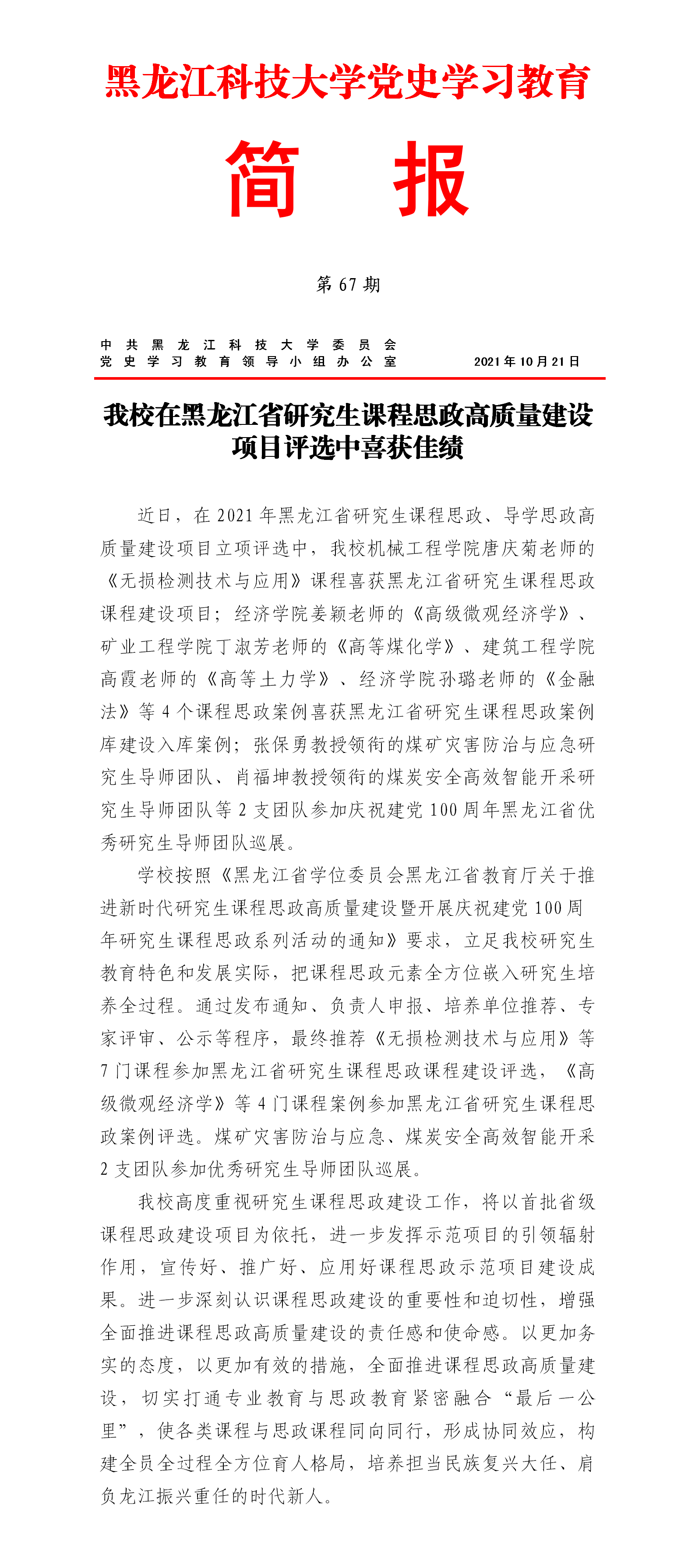 党史学习教育工作简报(第67期)