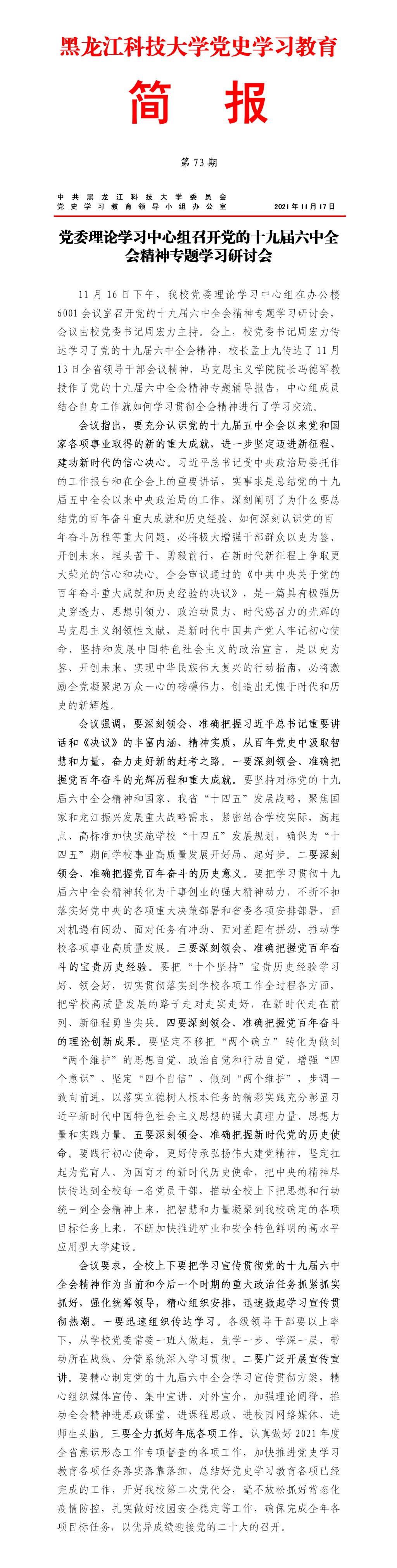 党史学习教育工作简报(第73期)