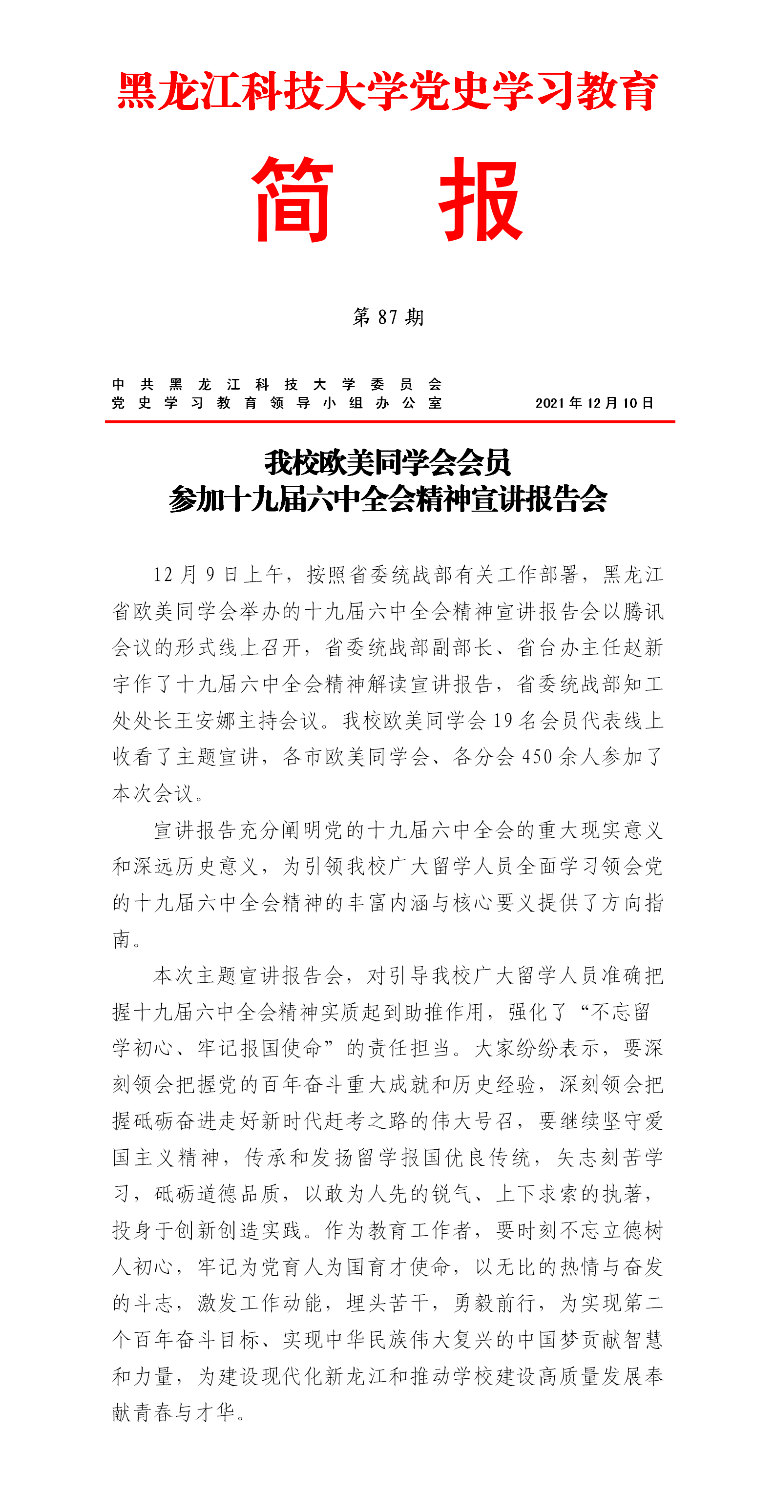 党史学习教育工作简报(第87期)