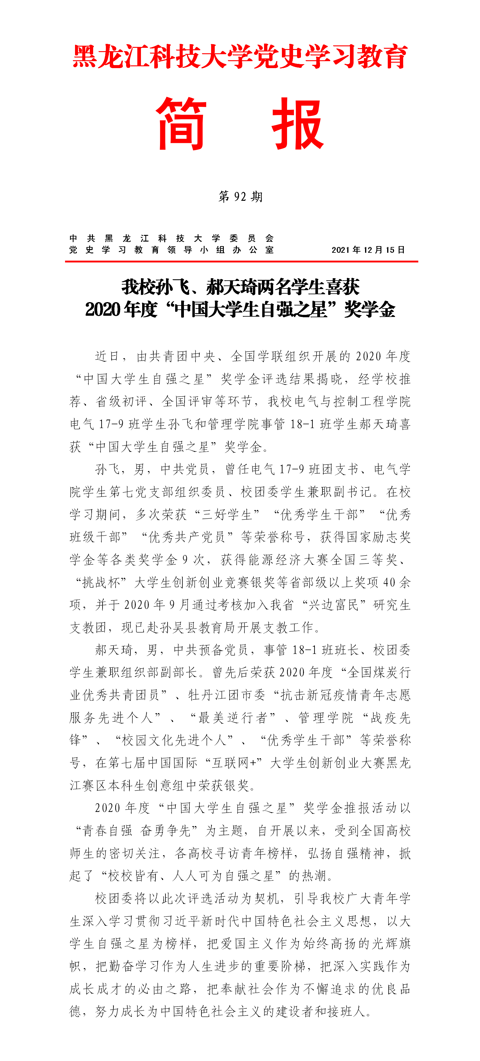 党史学习教育工作简报(第92期)