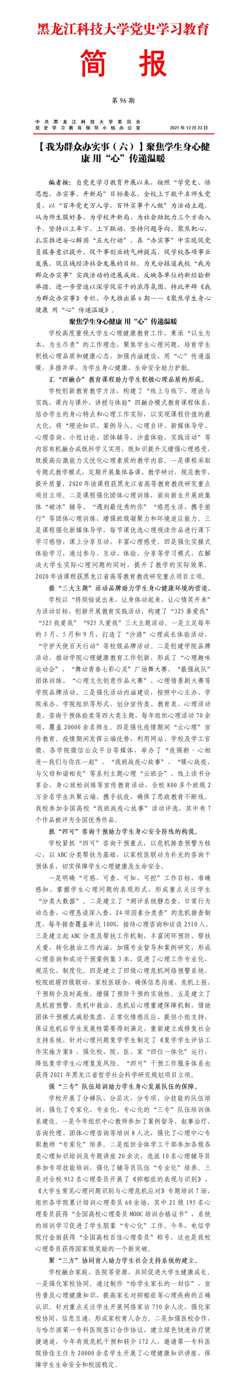 党史学习教育工作简报(第96期)