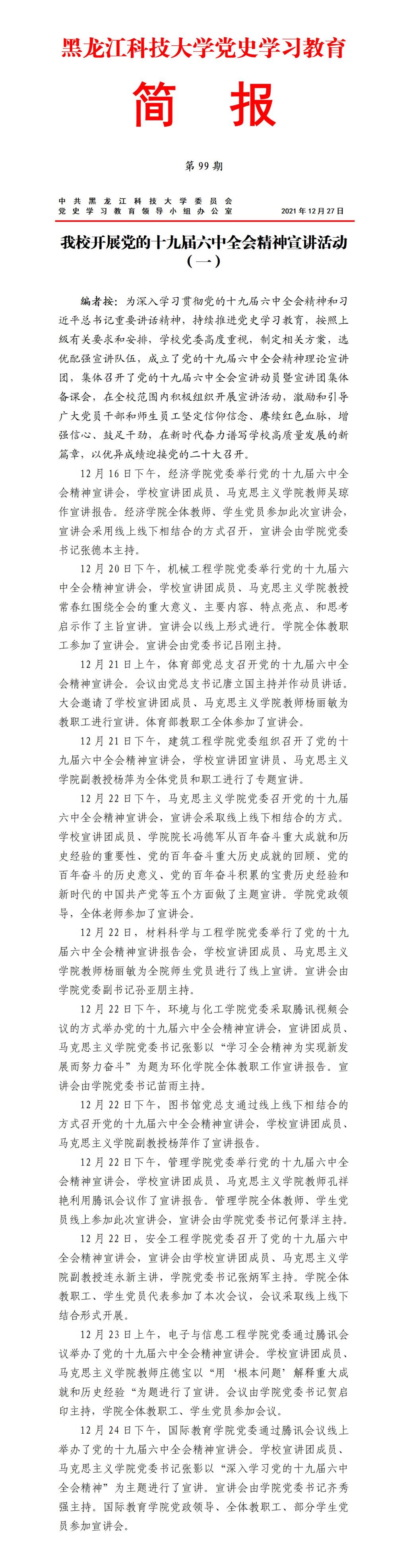 党史学习教育工作简报(第99期)