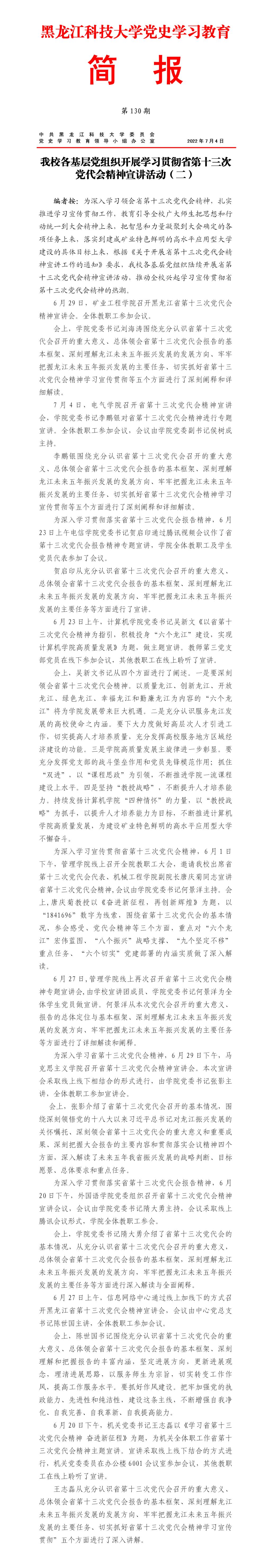 党史学习教育工作简报(第130期)