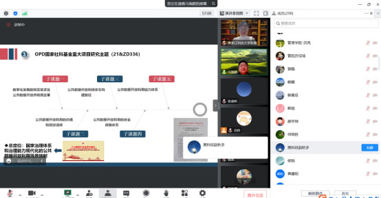 为了营造良好学术氛围,激发更多高水平的学术对话,由科技处、管理学院联合举办的“管理学院2022年专场学术报告会”,邀请到黑龙江大学博士生导师马海群教授,于11月18日通过“腾讯会议”网络平台做了题为《公共数据开放利用研究前沿》的学术报告。报告会由管理学院副院长张倩主持,管理学院及其他院系相关研究领域的师生近300人参加了本次报告会和学术交流活动。