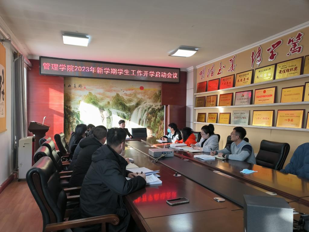 2月24日下午,管理学院在学院三楼会议室召开2023年新学期学生工作开学启动会议。学院全体辅导员参加会议,学院党委副书记徐海英主持会议。