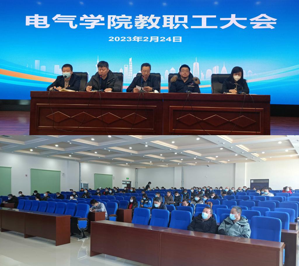 为贯彻落实学校有关会议精神及方案要求,科学谋划、精心筹备新学期的启动工作并部署2023年的工作任务,电气与控制工程学院于2月24日在朝阳楼召开了新学期教职工大会。会议由党委副书记侯树成主持,学院党政领导和全体教师参加了会议。