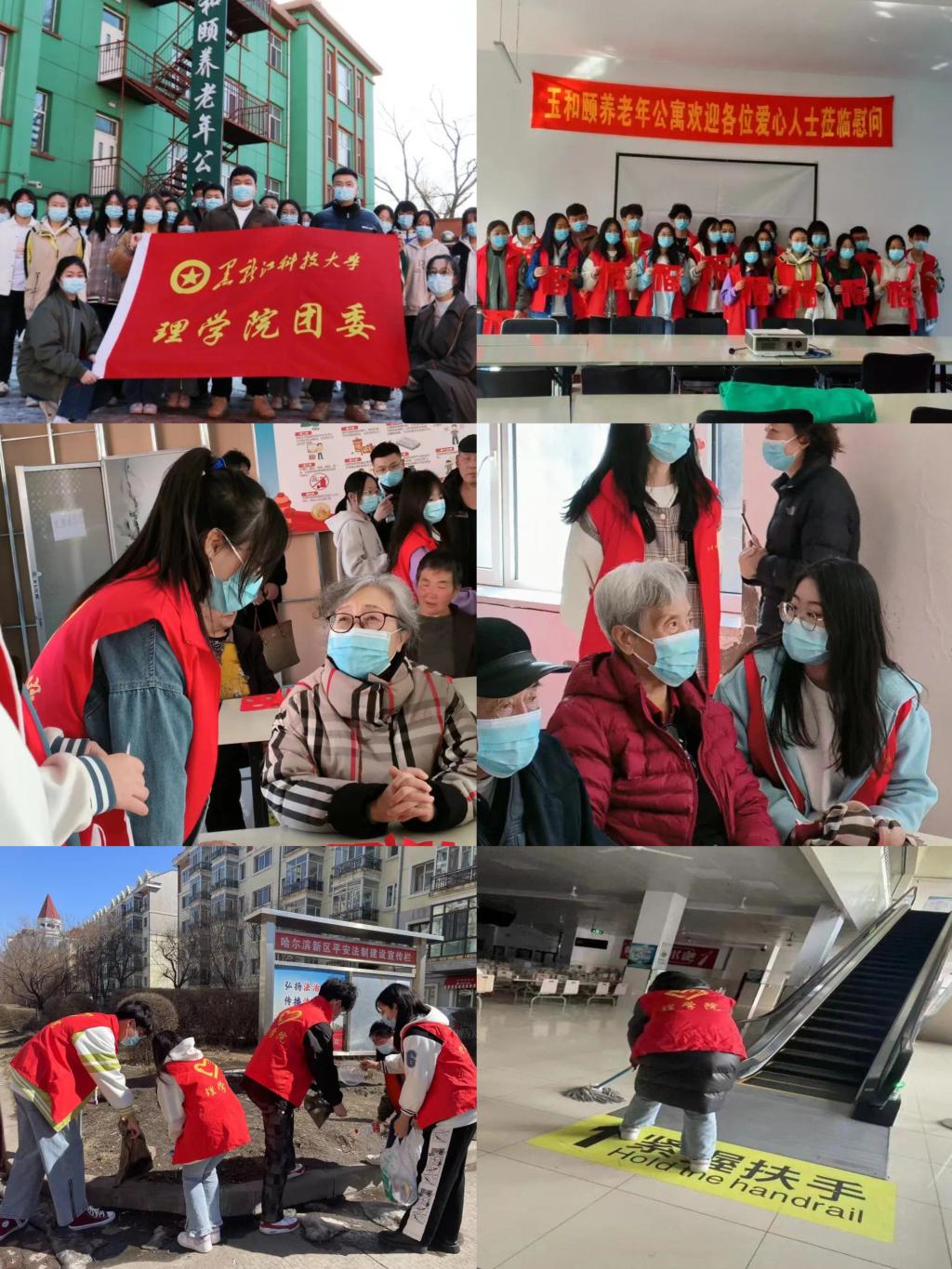 在“做”中擦亮初心使命。学院团委组织志愿者在教学楼、食堂、公寓等公共区域进行清洁打扫,同时制定常态化清扫机制,定期定点负责相关区域的清洁。3月19日前往玉和颐养老年公寓开展了“三月春风暖人心,雷锋精神永传承”的志愿服务活动。为老人们送去手工“福”字,陪老人们聊天,为他们带去欢笑和快乐,在实践中学习雷锋精神。