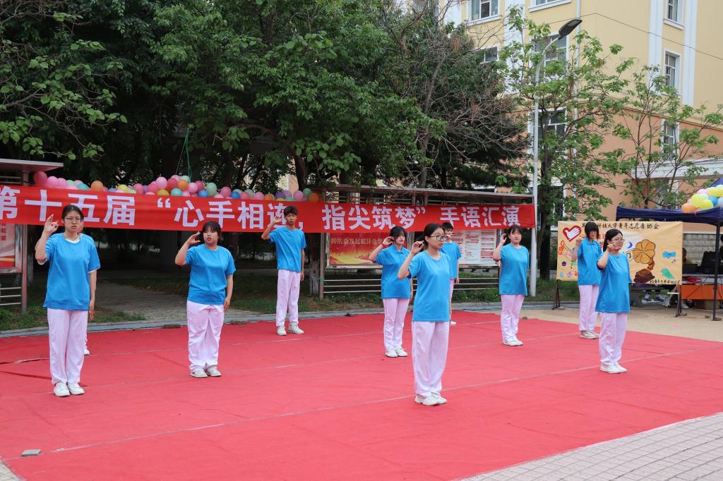为展现开云(中国)志愿者风采,表达志愿者对弱势群体的关心和关爱,积极践行“奉献、友爱、互助、进步”的志愿精神,由校团委主办、青年志愿者协会承办的第十五届“心手相连 指尖筑梦”手语汇演于6月3日下午在文化广场举办。