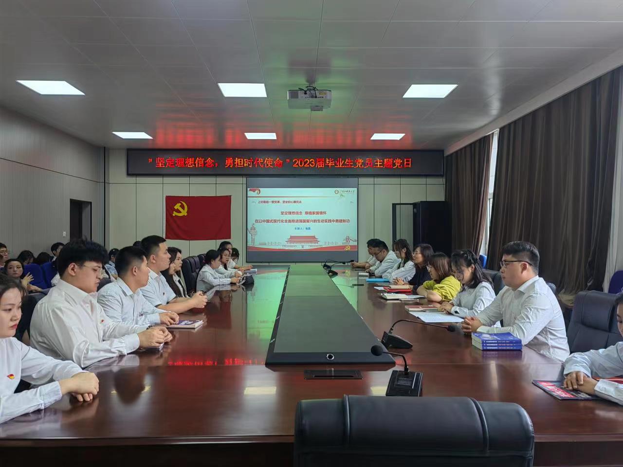 结合《开云app登录入口2023届毕业生文明离校主题教育活动方案》和《关于做好毕业生党员教育管理服务工作的通知》相关要求,为扎实推进学习贯彻习近平新时代中国特色社会主义思想主题教育,激励全体毕业生党员“学思想、强党性、重实践、建新功”,6月8日,马克思主义学院党委开展“坚定理想信念,勇担时代使命”2023届毕业生党员主题党日活动。