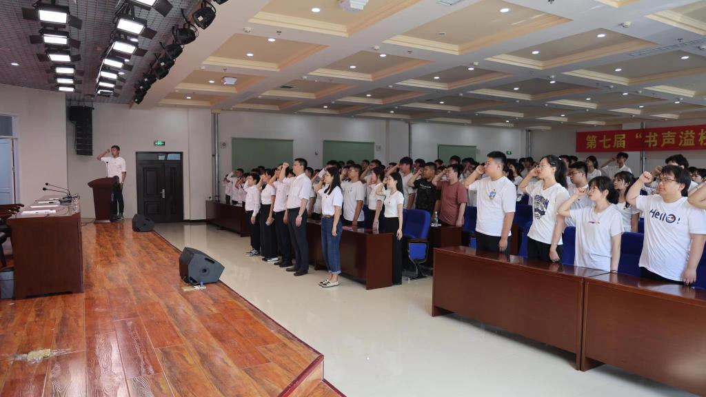 毕业生党员代表、材料学院学生第四党支部副书记、焊接2019级2班班长仉玉沣代表与会党员重温入党志愿书。