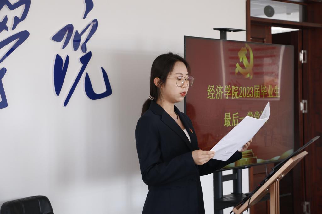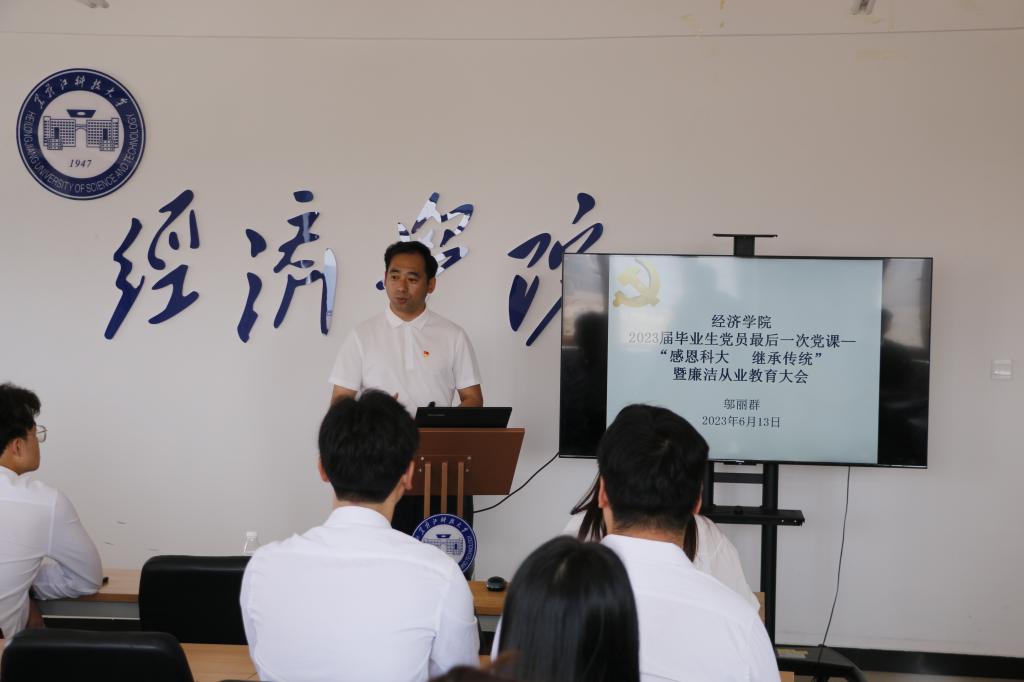 强化思想引领,一堂党课守初心。为进一步强化党员的身份意识,教育引导毕业生党员“不忘初心、牢记使命”,增强“四个意识”、坚定“四个自信”、做到“两个维护”,持续发挥党员的先锋模范作用。经济学院党委副书记邬丽群为毕业生开展以《感恩开云app登录入口 继承传统》为主题的思想政治教育大课,勉励毕业生在今后的新岗位上争创新业绩,多作新贡献,增强党性修养,尤其是要不断提升党员的责任担当意识;通过“三重温”等活动,引导毕业生进一步坚定不移听党话、矢志不渝跟党走,把爱国情、强国志、报国行融入到毕业后的人生征途中。