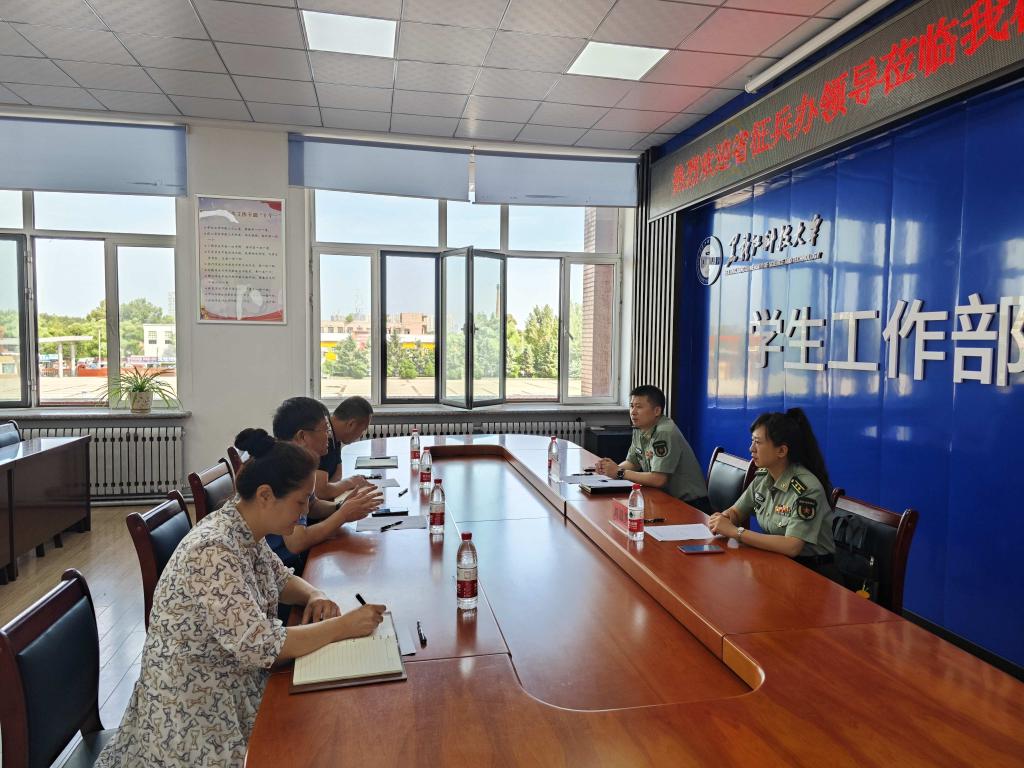 为贯彻落实全国征兵工作会议精神,进一步推进我省高校征兵工作有效开展。7月6日上午,黑龙江省人民政府征兵办公室上校处长马文武、中校参谋刘思男一行到开云(中国)检查指导征兵工作开展情况。学工部部长、武装部部长邬承斌,学生处副处长张瑞,国防教育与军事理论教研室全体成员陪同检查。