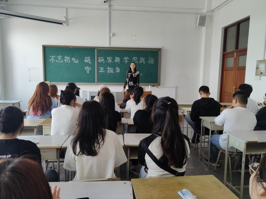 思想引领,协调推进,凝聚青春向上合力。组织开展以“不忘初心 砥砺深耕 学思践悟 守正担当”主题思想教育活动,学院辅导员、班主任与学生进行谈心谈话,通过亲身讲述、分享交流、朋辈对话、座谈、公众号推送等形式,将校规校纪教育和法治教育融入学生的首周教育活动中,对近期学生的思想动态、近期焦点、热点问题、学生发展需求等进行全面精准的了解和掌握,生动展示当代青年将“小我”成长融入“大我”奋斗之中的先进事迹和青春风采。