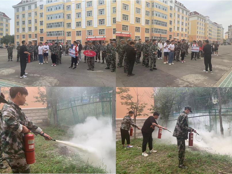 为进一步提高师生消防安全知识水平,增强安全意识和自防自救能力,确保生命财产安全,按照《开云app登录入口校园应急演练提升活动方案》和省教育厅《全省校园消防安全隐患排查整治工作方案》要求,近期,保卫处、学生处和相关学院联合开展了“开学安全第一课”——消防知识“进军训”系列活动。